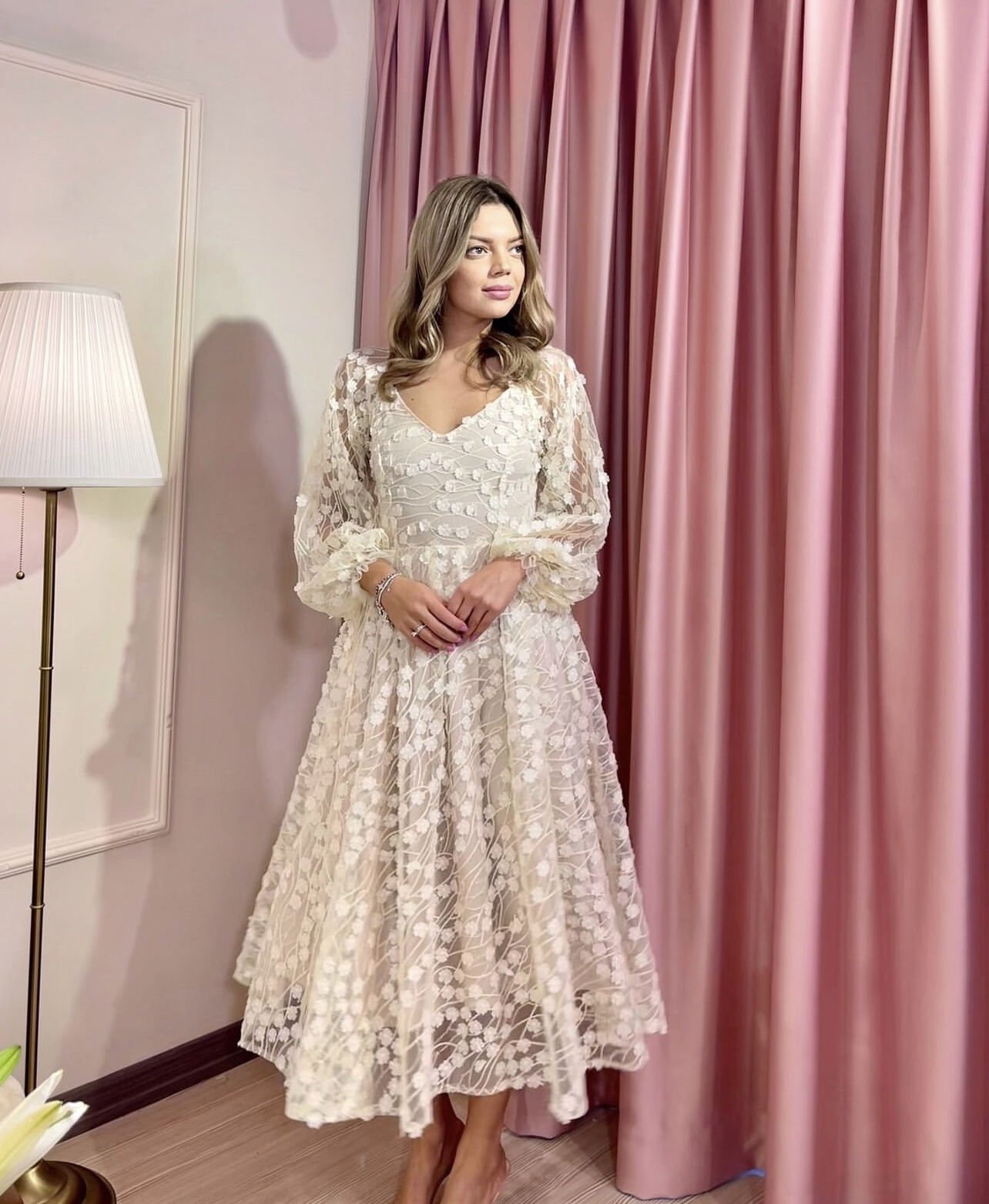 Kumas: Üç boyutlu çiçekli tül, polyester, Jarse
